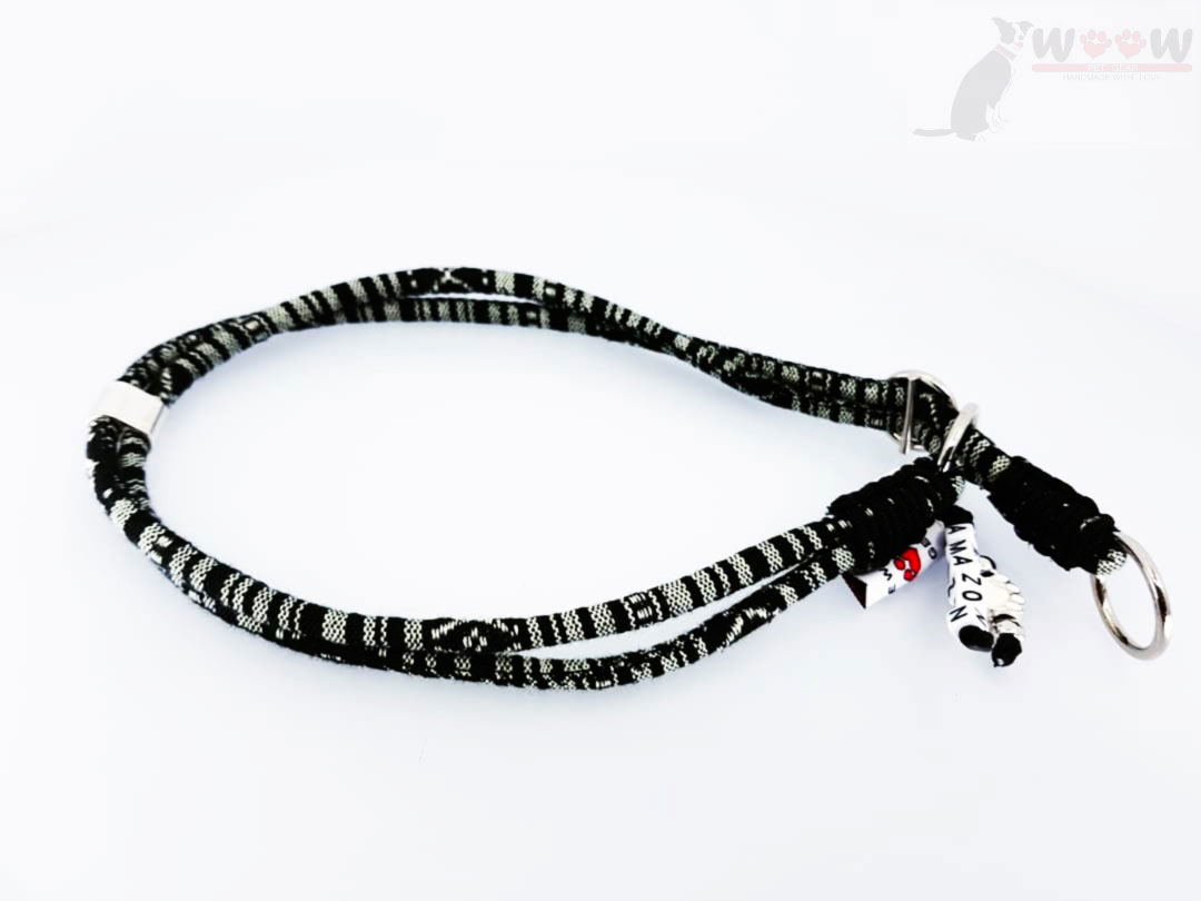 WOOW Boho slip ogrlice izrađujemo ručno od pamučnog užeta s čvrstom jezgrom, debljine 6mm. Na krajevima koristimo nehrđajuće prstenove kao i metalni stopper koji će vam poslužiti za točnu prilagodbu veličine prema obujmu vrata vašeg psa. Ogrlica je ugodna za nošenje i atraktivnog izgleda.